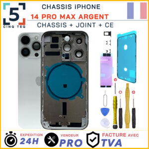 IPHONE 14 PRO MAX, Apple, Chassis iPhone, Chassis iPhone 14 Pro Max, Pieces PortableChassis Remplacement iPhone 14 Pro Max Argent Blanc Chassis Nu +Joint +Kit