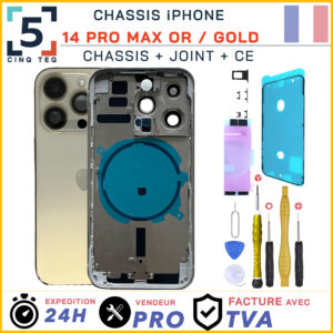 IPHONE 14 PRO MAX, Apple, Chassis iPhone, Chassis iPhone 14 Pro Max, Pieces PortableChassis Remplacement iPhone 14 Pro Max Or Gold Chassis Nu +Joint +Kit