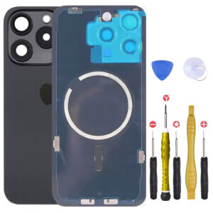 Vitre Arriere avec Plaque pour iPhone 15 Pro Max Titane Noir +Aimants et colle