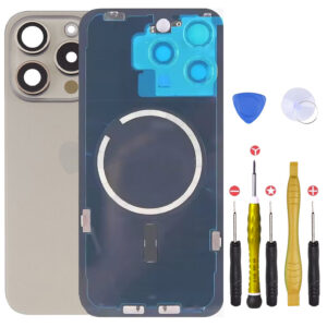 Vitre Arriere avec Plaque pour iPhone 15 Pro Max Titane naturel +Aimants et cole