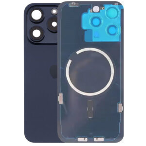 Vitre Arriere avec Plaque pour iPhone 15 Pro Max Titane Bleu +Aimants et colle