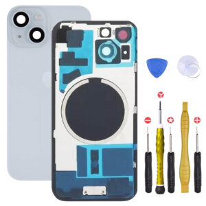 iPhone 15, Apple, Pieces PortableVitre Arriere + Plaque metallique pour iPhone 15 Bleu +Aimants et autocollant