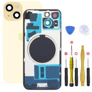 iPhone 15, Apple, Pieces PortableVitre Arriere + Plaque metallique pour iPhone 15 Jaune +Aimants et autocollant