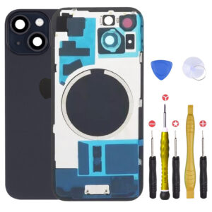 Vitre Arriere + Plaque metallique pour iPhone 15 Noir +Aimants et autocollant