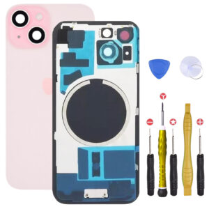 iPhone 15, Apple, Pieces PortableVitre Arriere + Plaque metallique pour iPhone 15 Rose +Aimants et autocollant