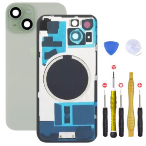 iPhone 15, Apple, Pieces PortableVitre Arriere + Plaque metallique pour iPhone 15 Vert +Aimants et autocollant