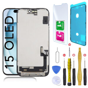 Ecran OLED Remplacement pour iPhone 15 Avec Joint Ecran, Verre trempé et Kit