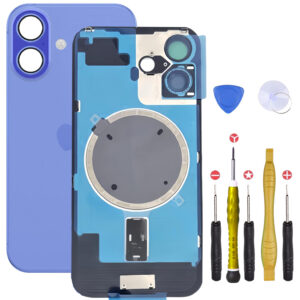 iPhone 16, Apple, Pieces PortableVitre Arriere avec Plaque pour iPhone 16 Bleu Outremer +Aimants et Colle