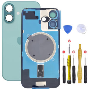 iPhone 16, Apple, Pieces PortableVitre Arriere avec Plaque pour iPhone 16 Vert Sarcelle +Aimants et Colle