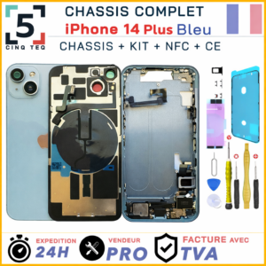 IPHONE 14 PLUS, Apple, Chassis iPhone 14 Plus, Pieces PortableChassis Complet Remplacement iPhone 14 Plus Bleu avec Arriere +Cadre +NFC +Kit