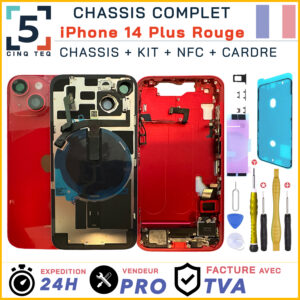 IPHONE 14 PLUS, Apple, Chassis iPhone 14 Plus, Pieces PortableChassis Complet Remplacement iPhone 14 Plus Rouge Red Arriere +Cadre NFC +Kit