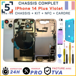IPHONE 14 PLUS, Apple, Chassis iPhone 14 Plus, Pieces PortableChassis Complet Remplacement iPhone 14 Plus Mauve Violet Arriere +Cadre NFC +Kit