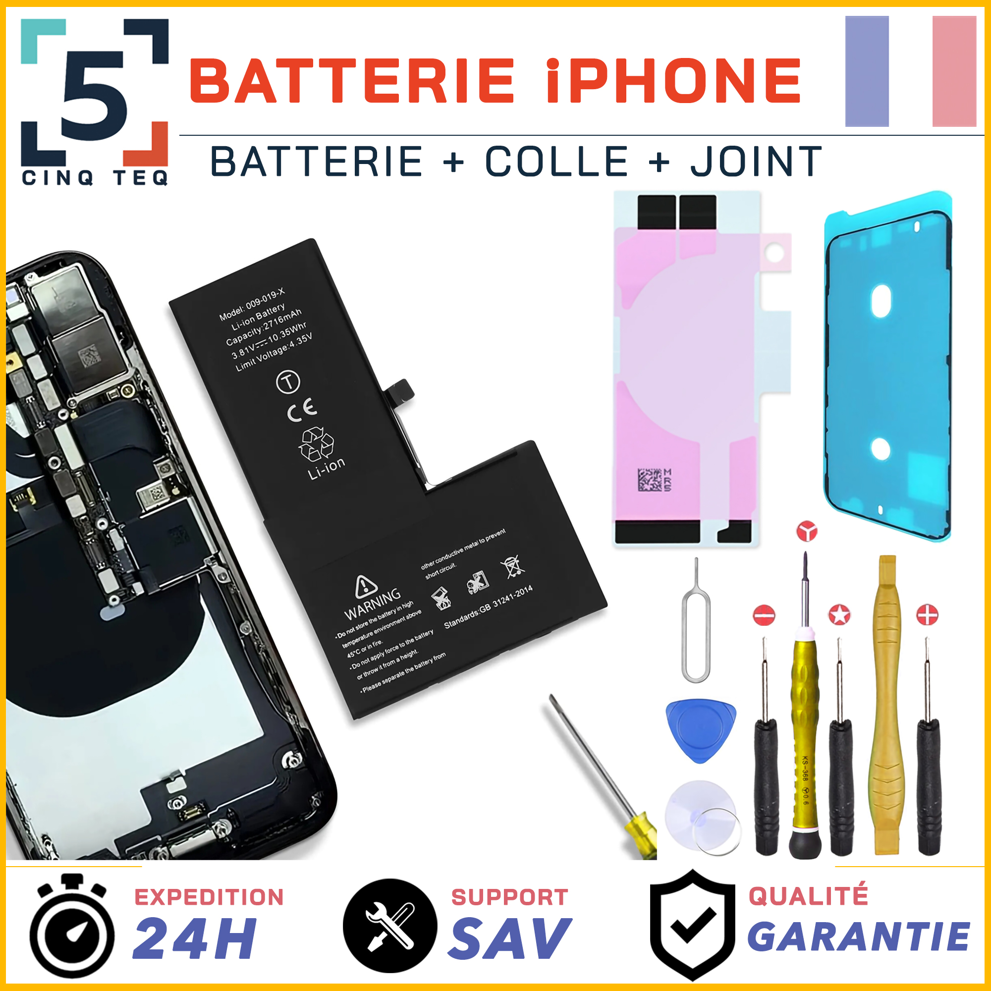 Batterie de remplacement pour iphone plusieurs modèles avec joint d’écran et autocollant de batterie.