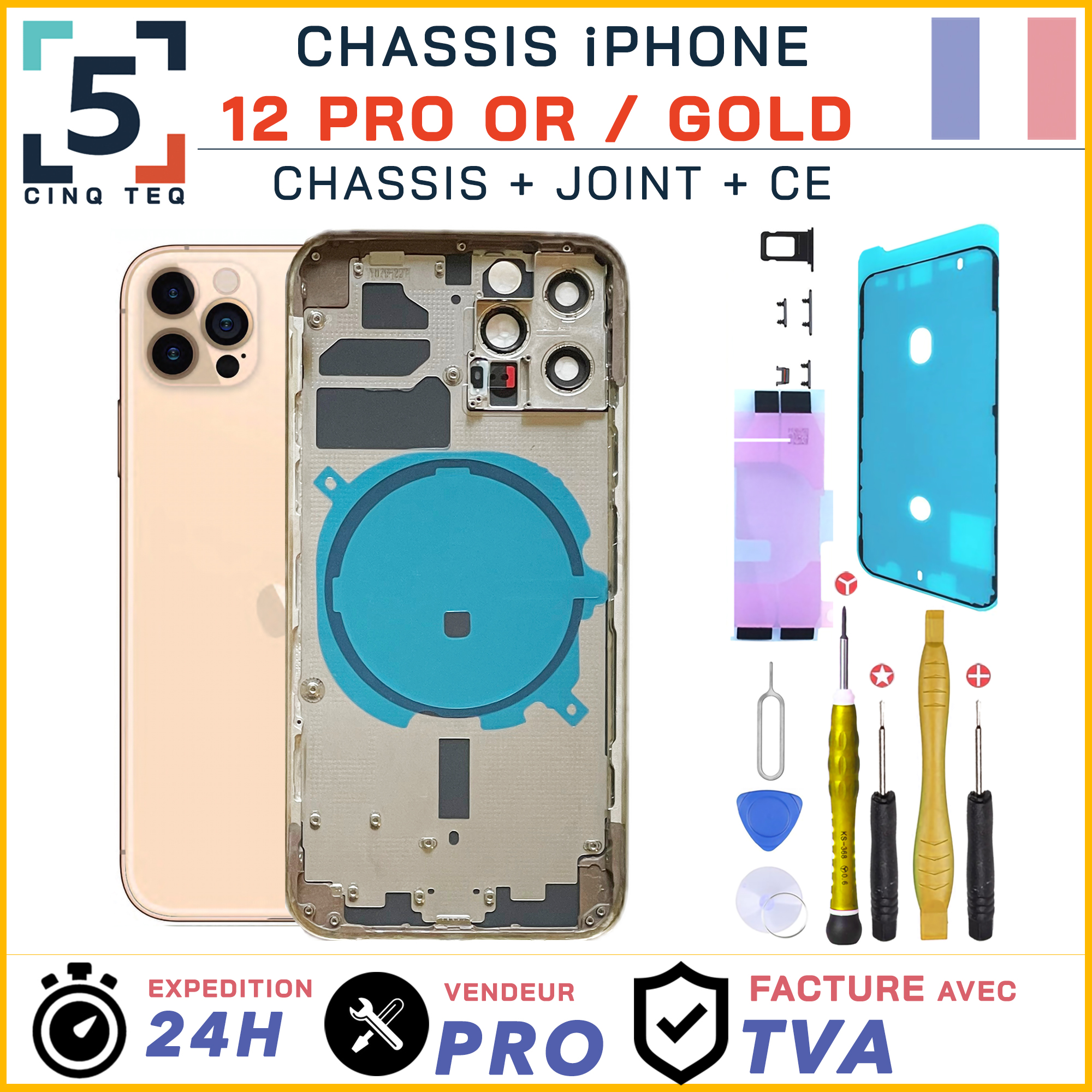 Ce composant permet de remplacer la face arrière endommagée d’un iPhone 12 Pro lorsque le châssis est cassé, fissuré ou fortement rayé.