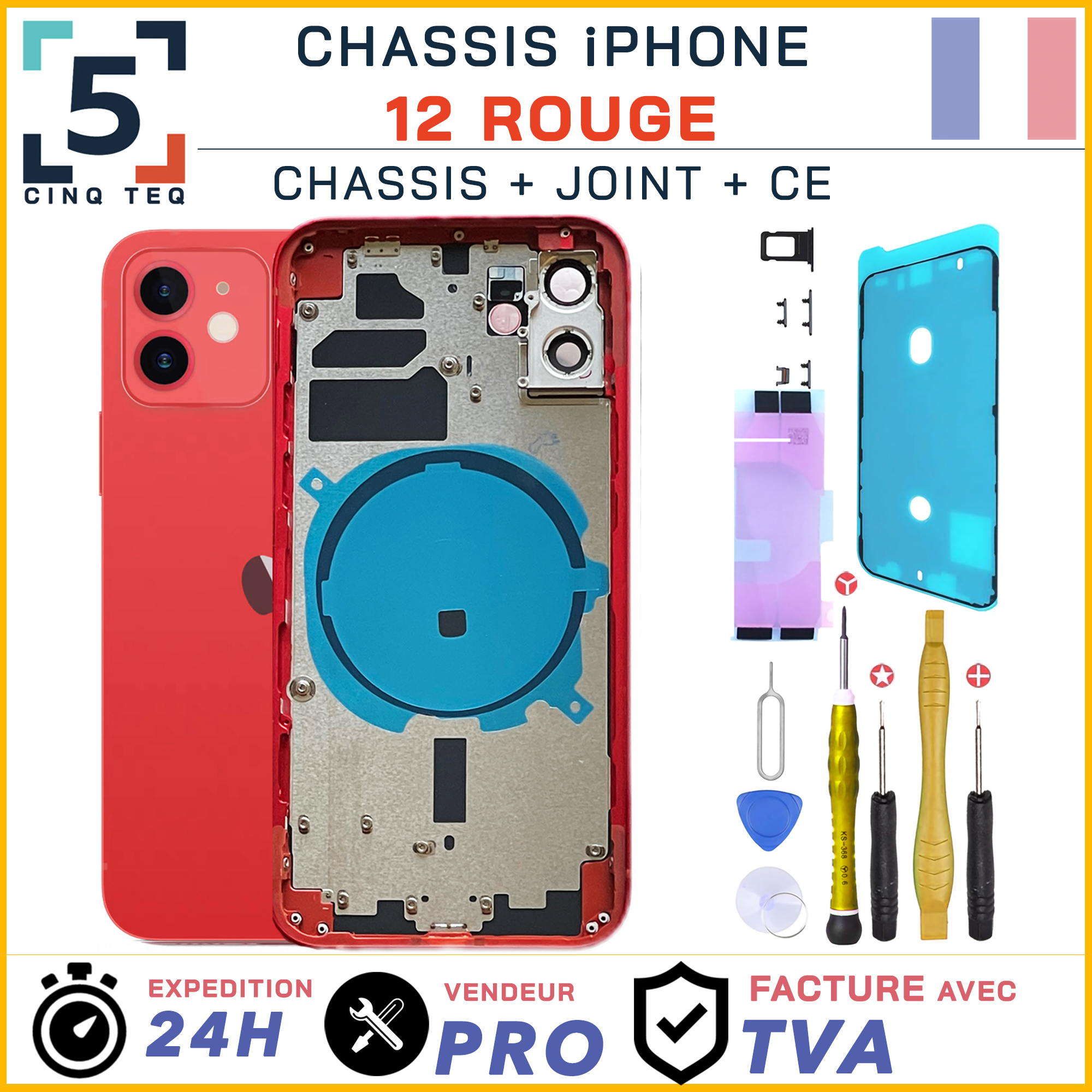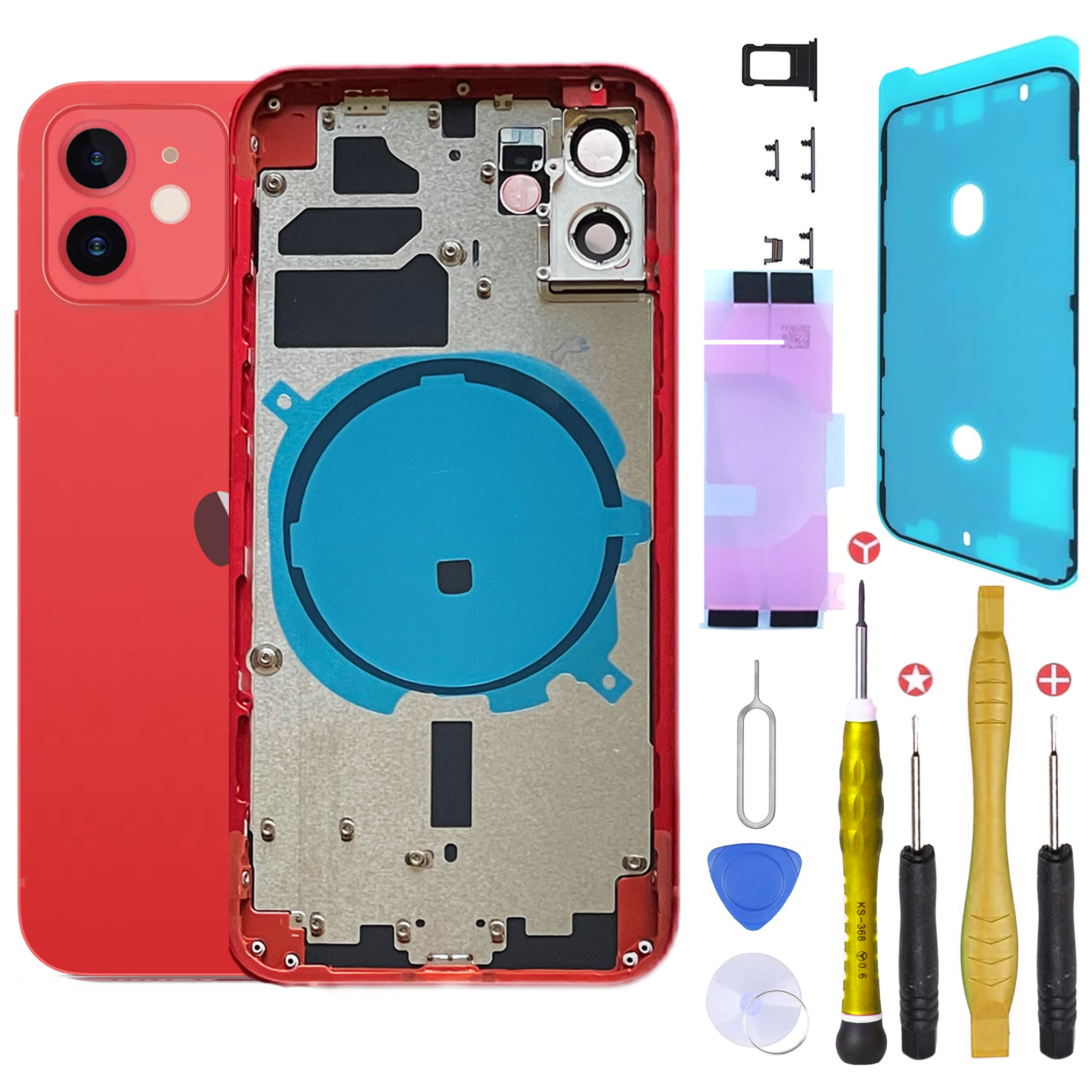 Chassis remplacement pour iPhone 12 Rouge Chassis NU +Joint +Kit
