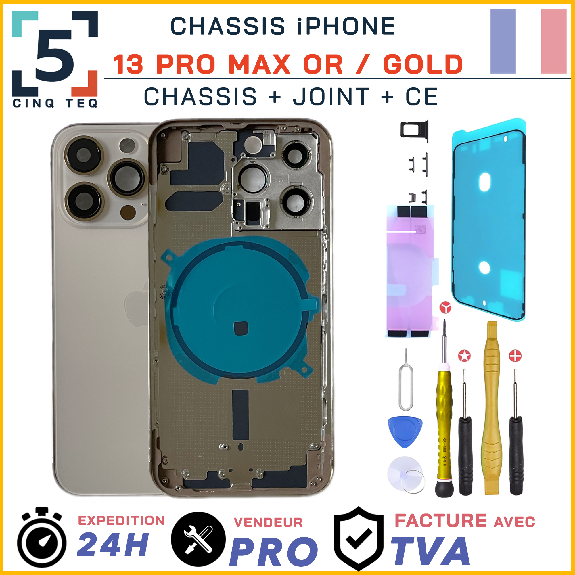 Ce composant permet de remplacer la face arrière endommagée d’un iPhone 13 Pro Max lorsque le châssis est cassé, fissuré ou fortement rayé.