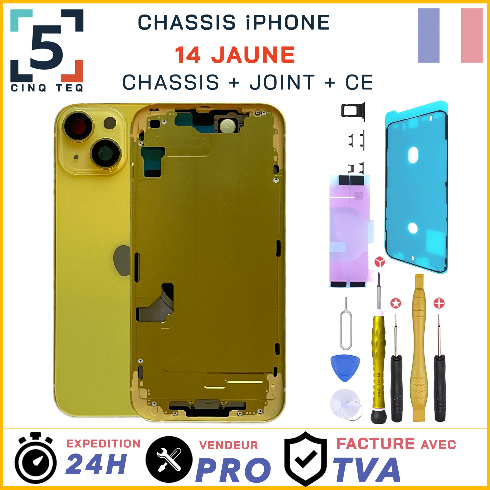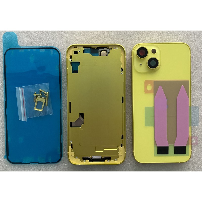 Ce composant permet de remplacer la face arrière endommagée d’un iPhone 14 lorsque le châssis est cassé, fissuré ou fortement rayé.