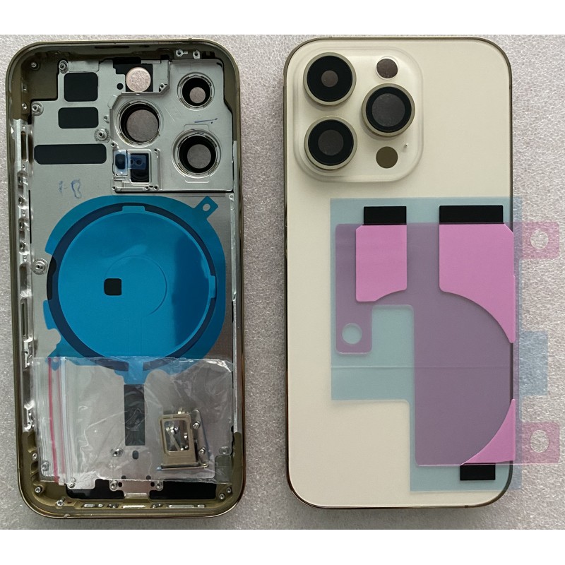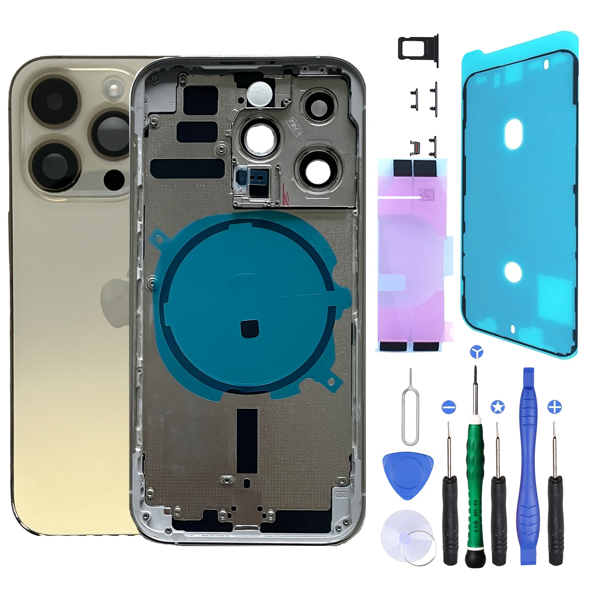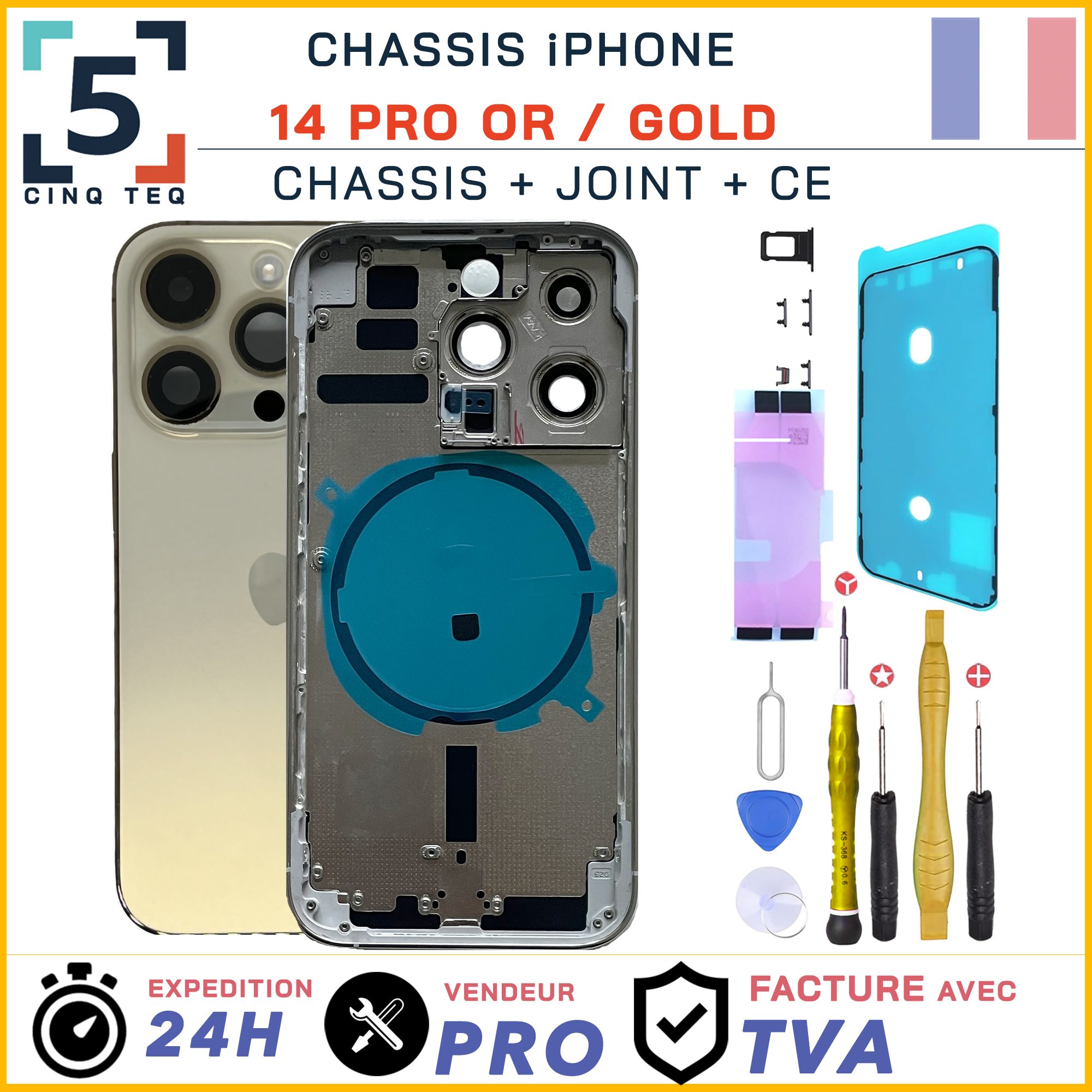 Ce composant permet de remplacer la face arrière endommagée d’un iPhone 14 Pro lorsque le châssis est cassé, fissuré ou fortement rayé.
