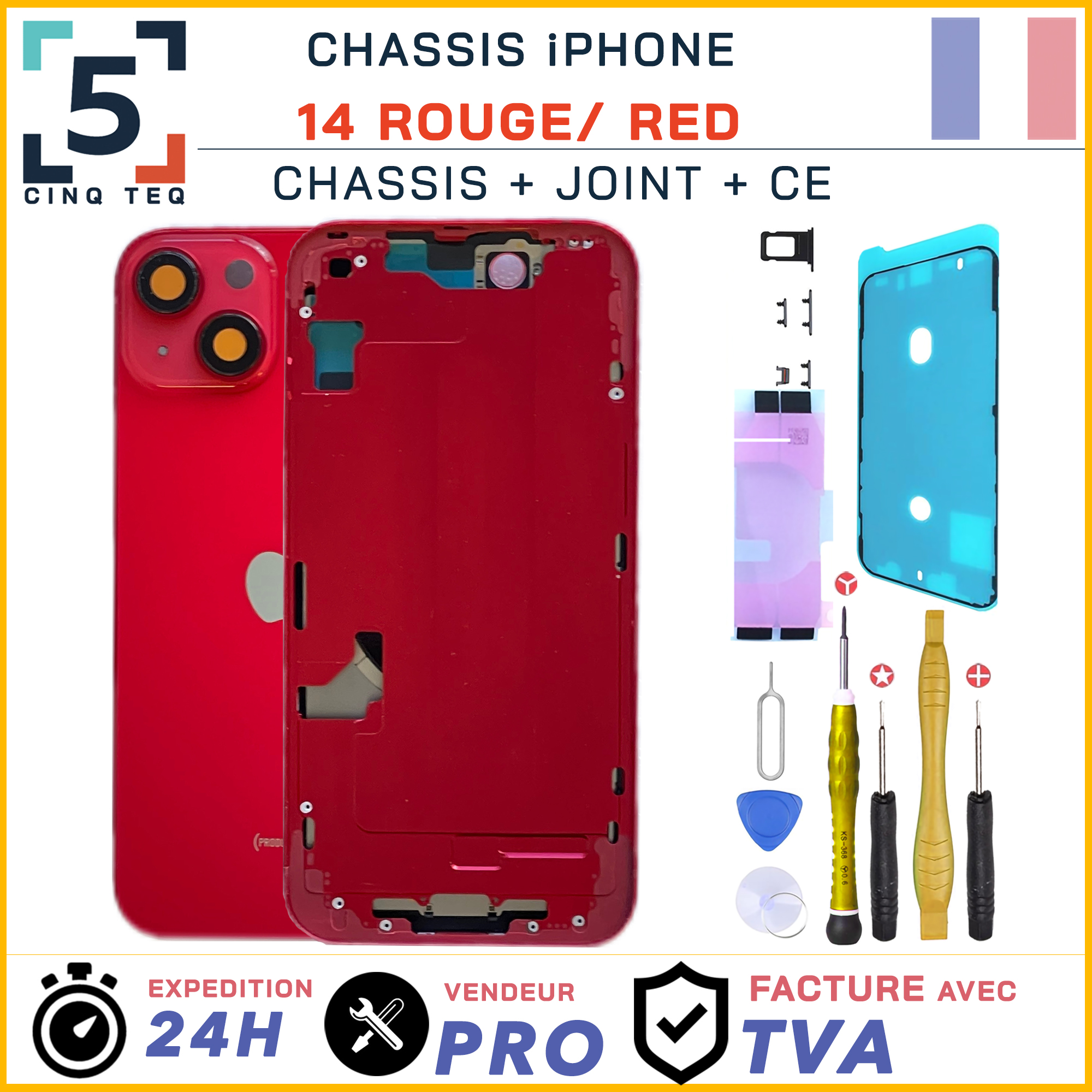 Ce composant permet de remplacer la face arrière endommagée d’un iPhone 14 lorsque le châssis est cassé, fissuré ou fortement rayé.