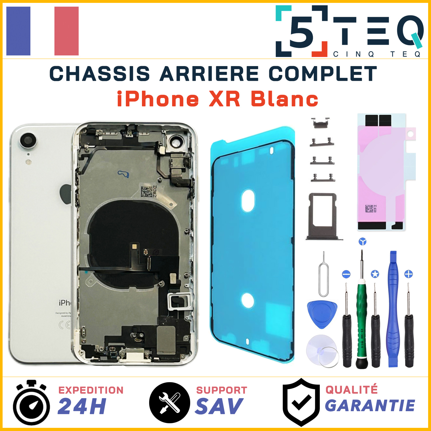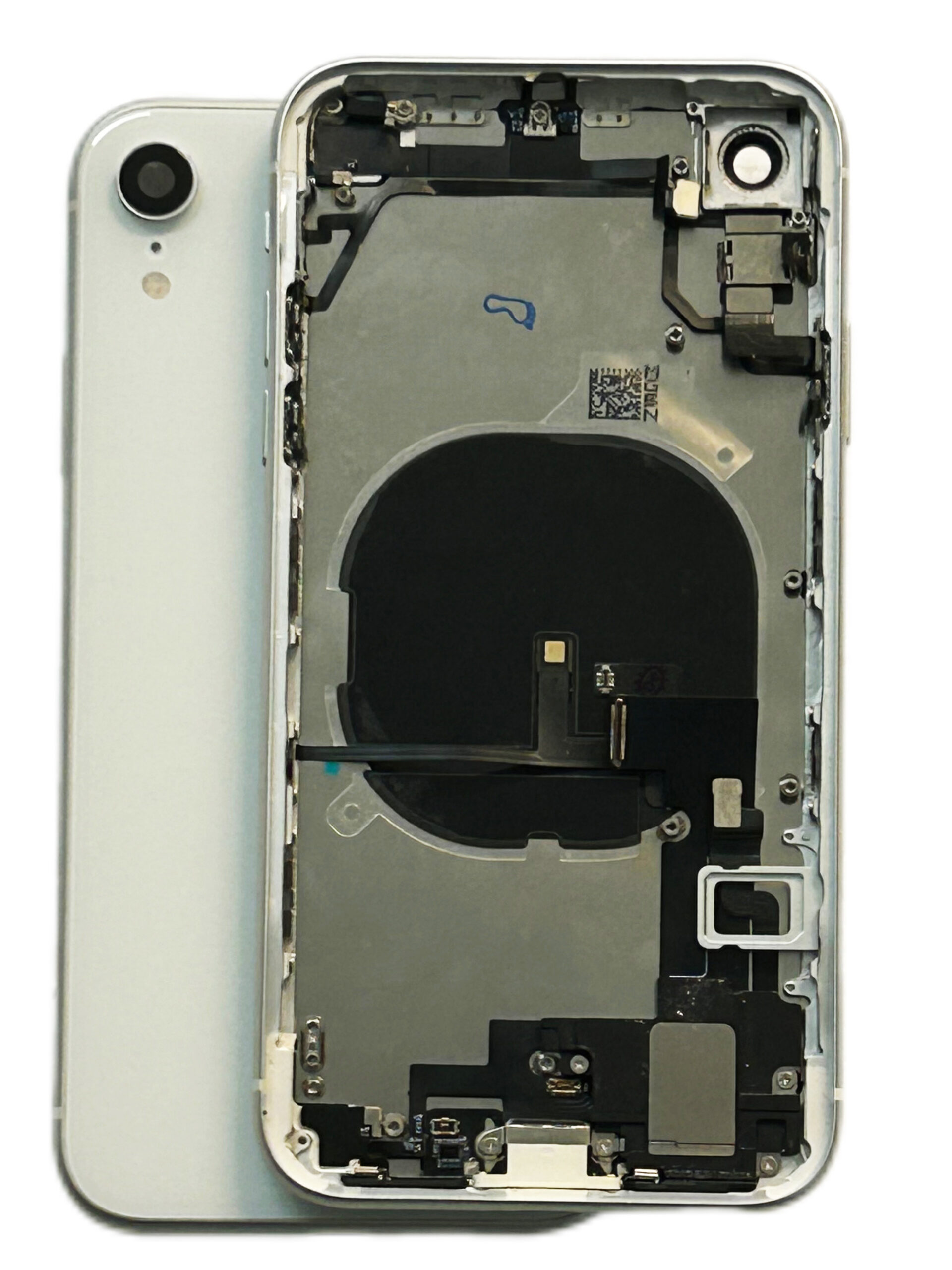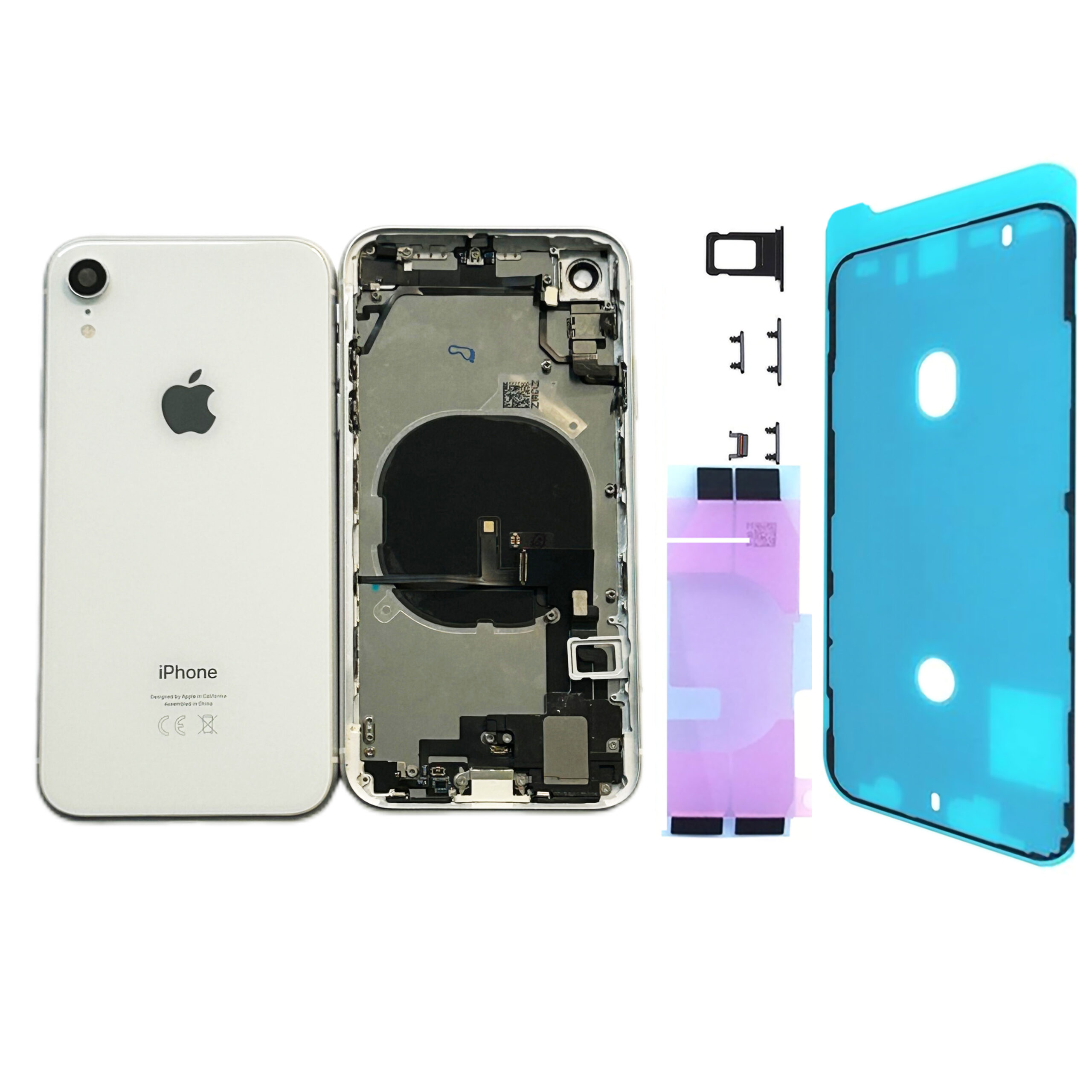 _ Châssis arrière prémonté complet pour iPhone XR Blanc, avec joint d’écran, NFC et adhésif._