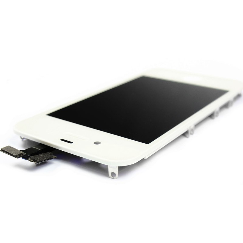 – 1 vitre tactile iPhone 4 blanc sur châssis assemblé avec écran LCD.