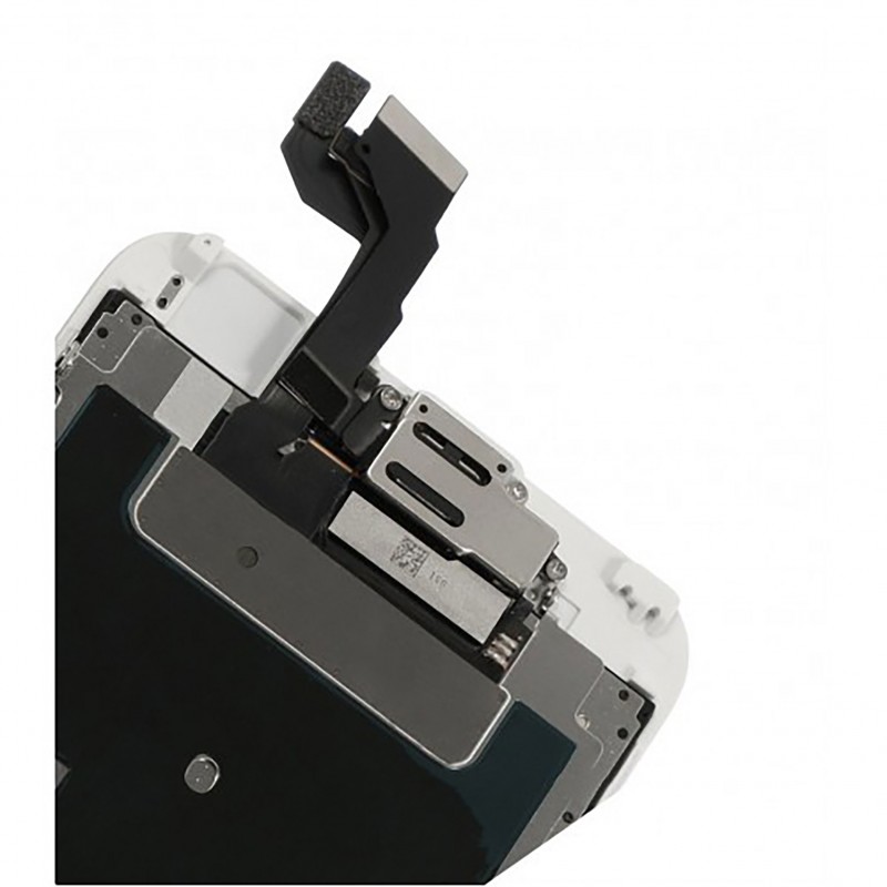 Complet : la vitre tactile, l’écran LCD Rétina, le camera, la nappe avec son support en métal, l’écouteur, la caméra avant et la plaque métallique arrière.