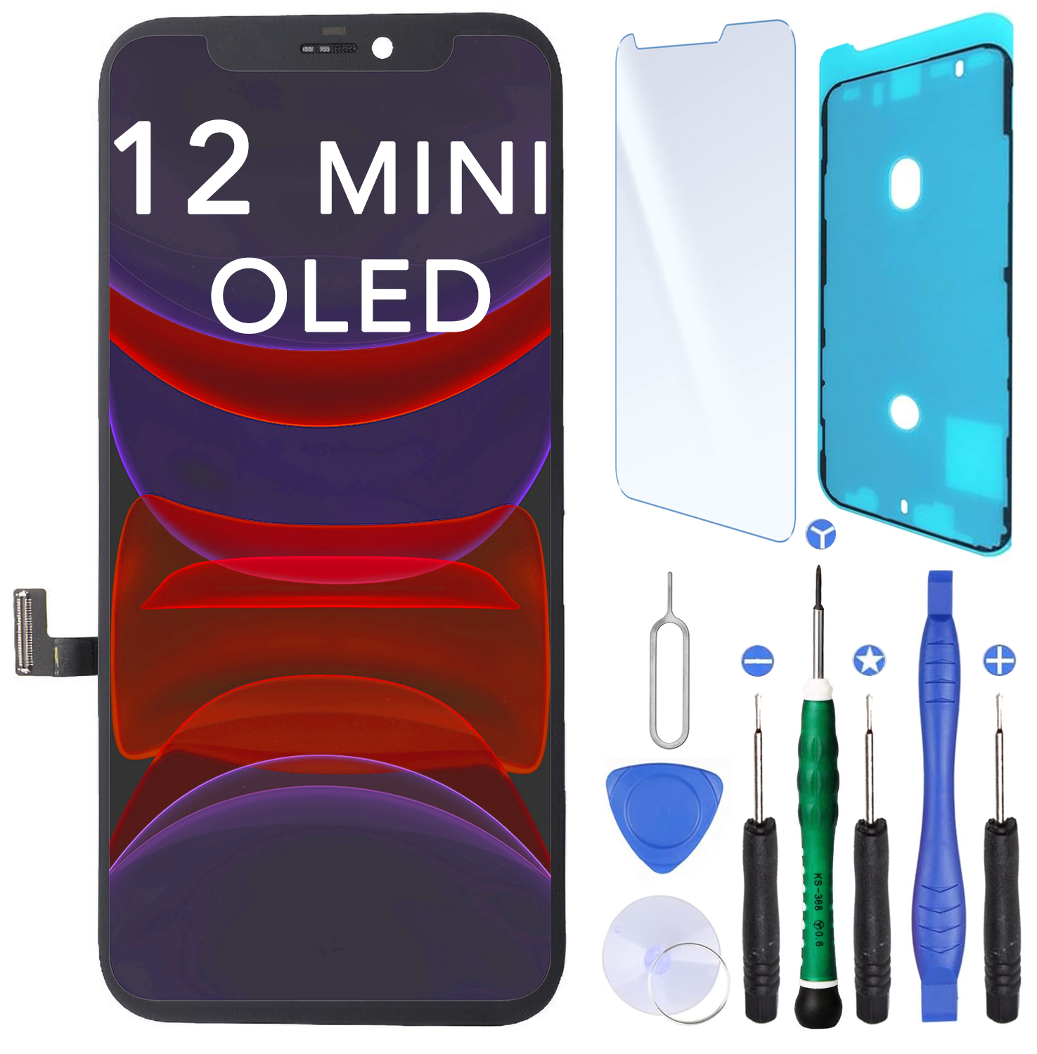 Ecran OLED Remplacement pour iPhone 12 Mini +Joint ecran, Verre trempe, +Kit