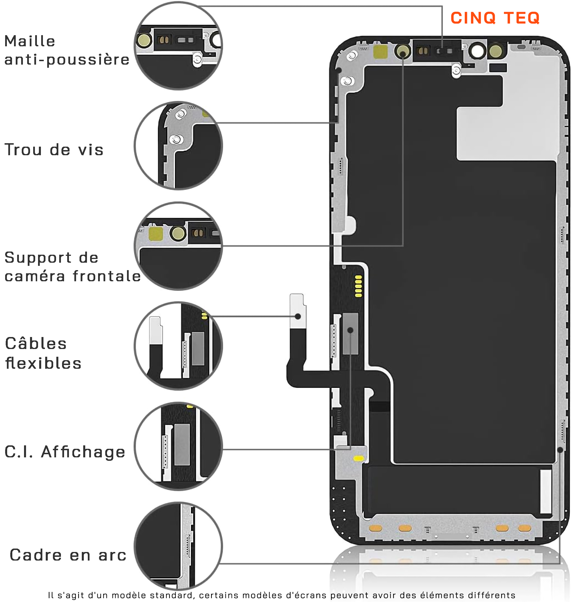 *iPhone est une marque déposée, nous ne possédons ni ne représentons la marque, il s’agit d’une pièce de rechange compatible.